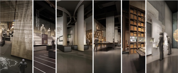 設計以,“空間”這個概念貫穿始終,遵從一種動態的、序列化、有節奏的展示形式。設想一個四維的展示空間,是給通常意義上的三維空間加上“時間”這一概念。時間意味著運動,拋開時間研究和設計空間將是乏味、沒有意義的。人們在展示環境中對文物的觀賞,應該是一種動態的觀賞,而時間就是最好的詮釋方式。展線在空間中的處理,力求做到尤如音樂旋律般的流暢,抑揚頓挫分明有致。在滿足各項功能的同時,希望讓觀眾感受到空間變化帶來的無窮魅力。