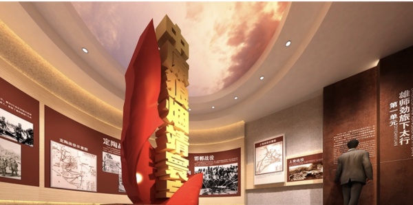 “把歷史的真實還給曹操”,遵循從“真實”到“演繹”再到“真實”的敘事邏輯,以唯物主義歷史觀與辯證法,引領觀眾認知真實的曹操。方案設計尊重遺址環境,注重空間敘事邏輯性以及空間造型的打磨與塑造,強調富有變化的展墻和冷暖色調、材質肌理的對比,實現內容與形式的協調統一。打造沉浸式觀感,提升展覽震撼效果。重要內容場景化展示,在動靜結合、虛實對比的節奏中,注重對展覽節奏感和韻律感的把控。以宏大敘事呈現魏武王的雄才大略.
